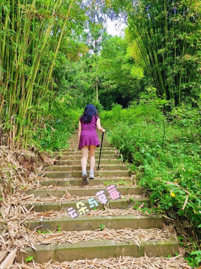 “绿树阴浓夏日长”,阳光透过竹叶筛下斑驳光影,照射出云老师曼妙的身姿。山风穿林而来,携着竹林的清香,吹散眉间暑气,吹拂着云老师的下体。